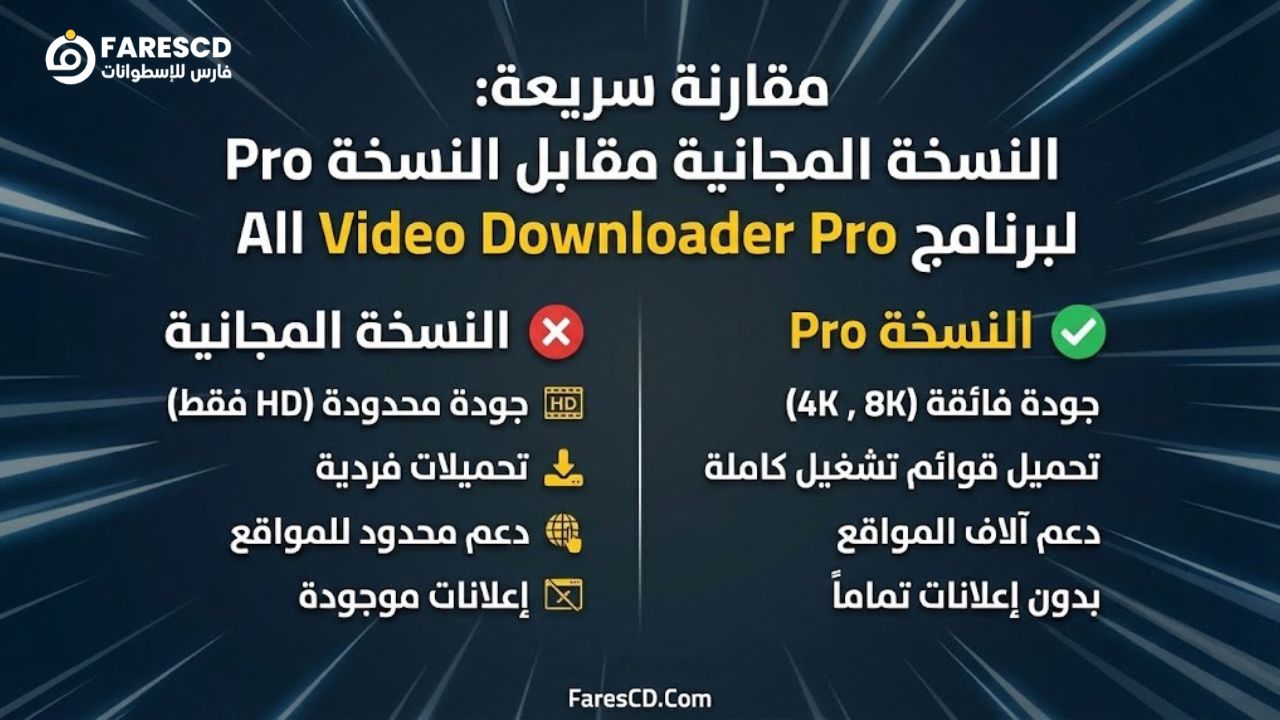 عندما تبحث عن تحميل برنامج All Video Downloader Pro، فأنت غالباً تبحث عن التميز وتجاوز القيود. النسخة البرو تقدم:
