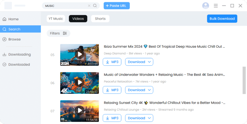 انسخ رابط الفيديو من المنصات المدعومة أو ابحث باسم المقطع داخل شريط البحث للوصول إلى النتائج بسرعة.
