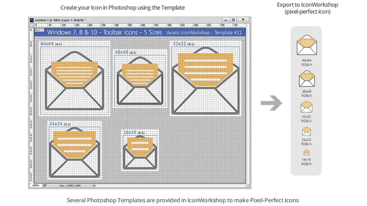 Axialis IconWorkshop Professional يتيح الاستفادة من خصائصه المتقدمة مثل الطبقات المتعددة، قناة ألفا الشفافية، والفلاتر الديناميكية لإنتاج أيقونات احترافية “Pixel-Perfect” بسرعة ودقة عالية، مع معاينة فورية في سياقات حقيقية.