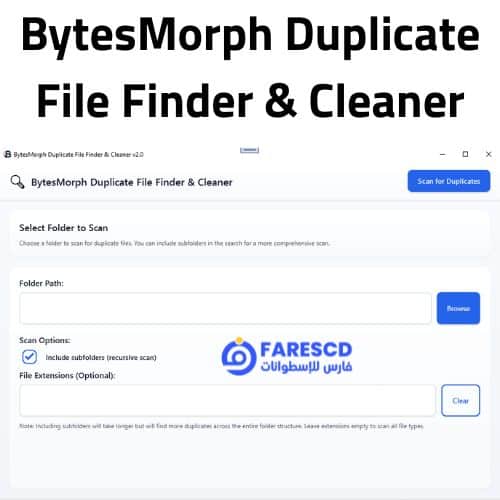 خطوات استخدام BytesMorph Duplicate File Finder & Cleaner بالتفصيل