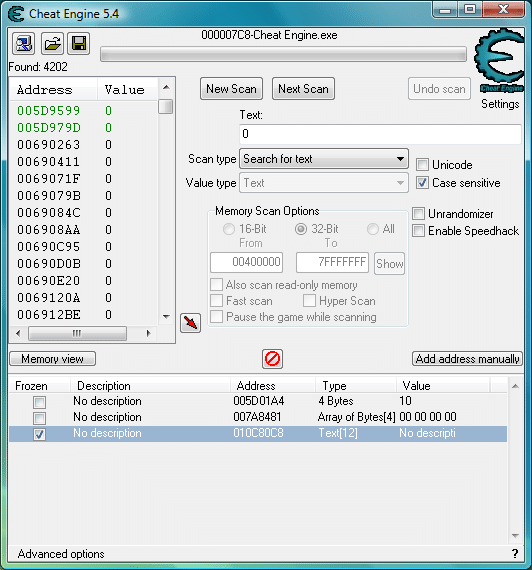 الألعاب القديمة والإصدارات غير المحمية: العناوين الكلاسيكية أو الإصدارات الخالية من مضادات الغش غالباً ما تسمح بمعدل نجاح مرتفع لمسح 4 Bytes/Float وتثبيت القيم مع Freeze.