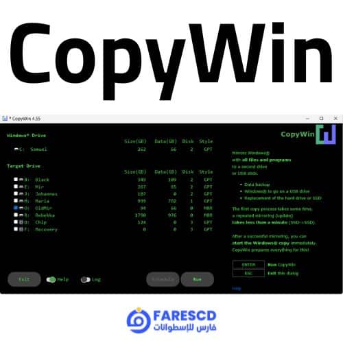 برنامج CopyWin هو أداة مجانية محمولة تهدف إلى إنشاء مرآة دقيقة لمحتويات قرص نظام ويندوز، بحيث تنسخ الملفات والبرامج كما هي إلى قرص آخر أو وحدة USB أو بطاقة MicroSD لتسهيل ترقية أو استبدال وحدة التخزين دون إعادة تثبيت النظام أو التطبيقات.