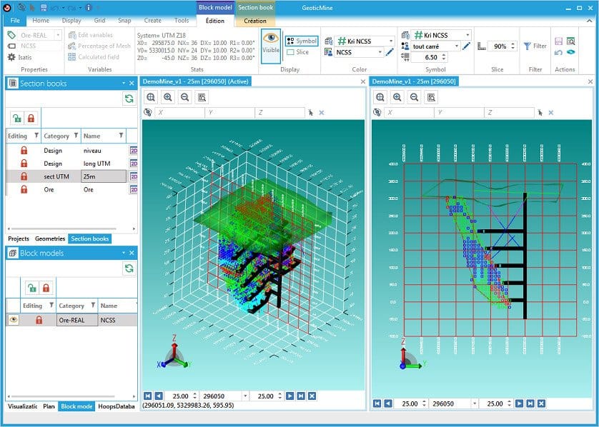 - يساعد البرنامج في إنشاء نماذج ثلاثية الأبعاد دقيقة للمناجم، مما يسمح للمهندسين بتحليل التكوينات الجيولوجية وتقدير حجم الموارد بدقة.