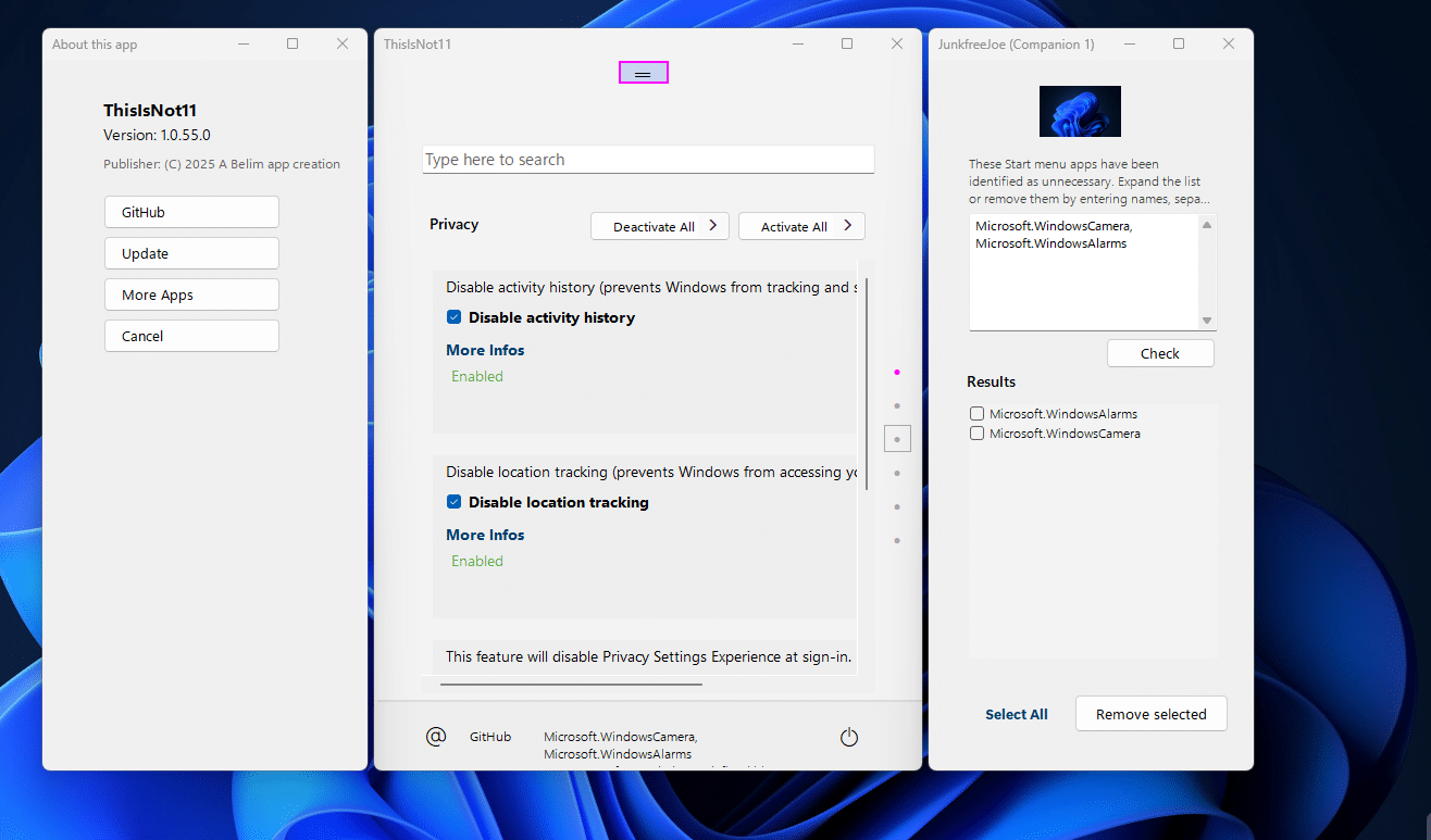- يساعد البرنامج في إزالة التطبيقات والخدمات غير الضرورية التي تأتي مثبتة مسبقًا على Windows 11، مما يحسن أداء النظام ويوفر مساحة تخزين.
