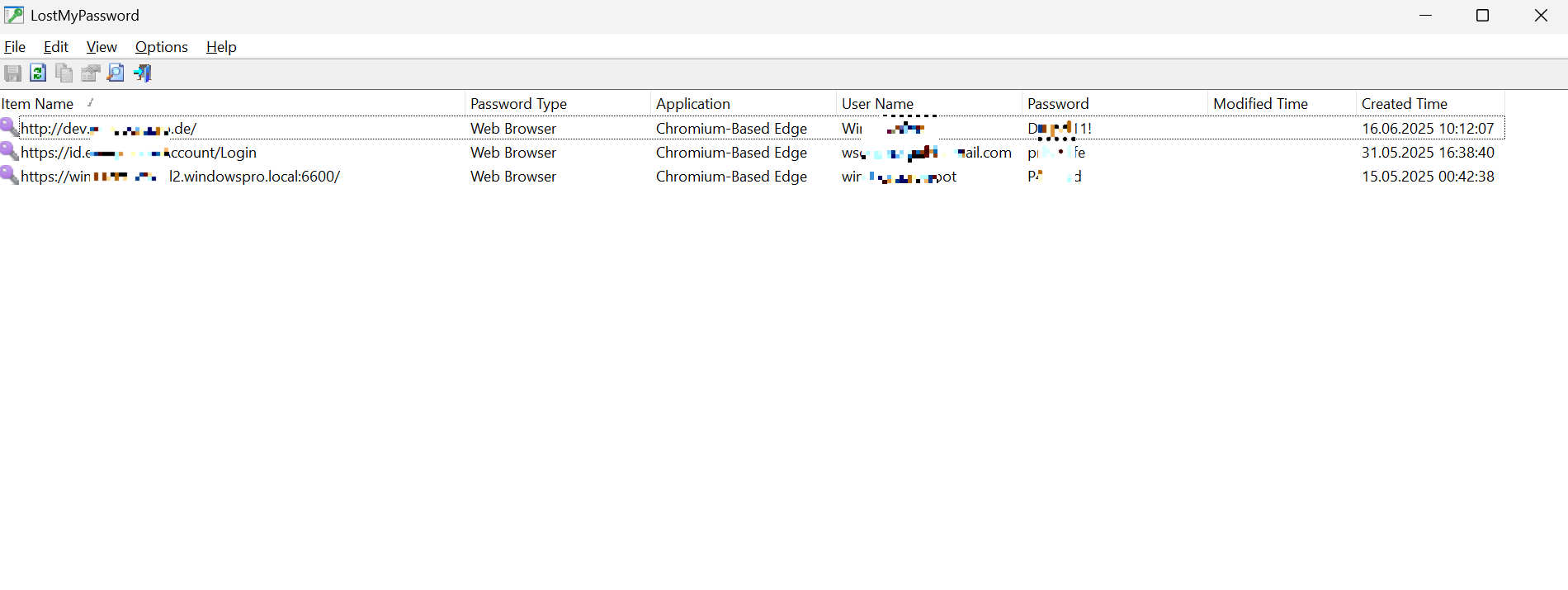 LostMyPassword: سرعة فورية لأنه يقرأ مخازن الاعتماد المحلية مباشرة دون شن هجمات تخمين، ما يوفّر نتائج في ثوانٍ إلى دقائق على نفس الجهاز.
