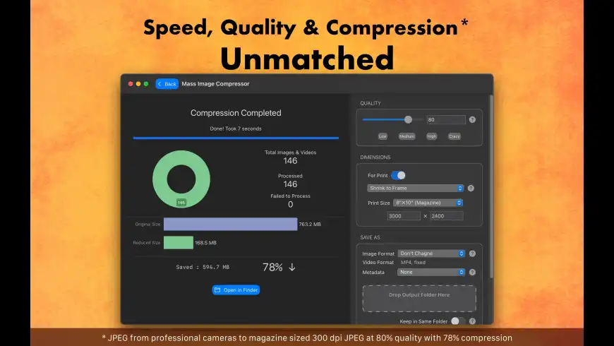- تبسيط سير العمل: سحب-وإفلات مجلد كامل، ضبط جودة/أبعاد، ثم ضغط كل الصور دفعة واحدة مع الحفاظ على الأرشيف منظمًا وآمنًا.