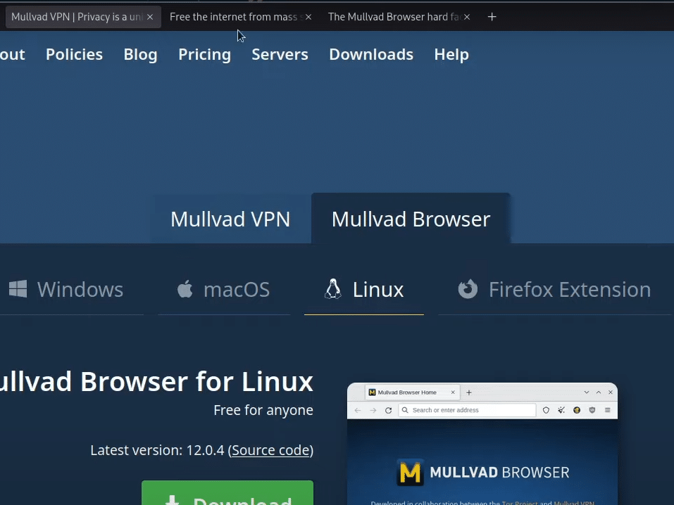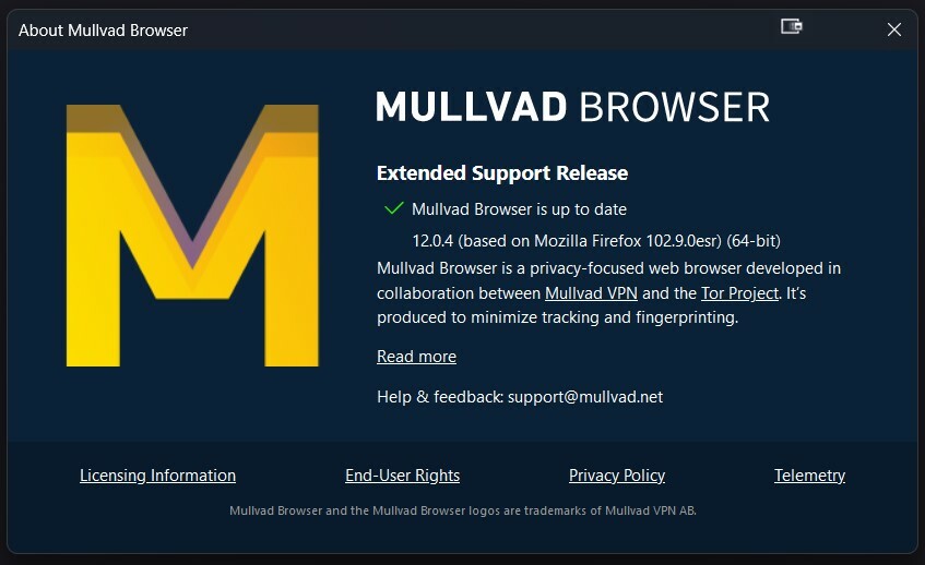 Mullvad Browser هو متصفح خصوصية مبني على فايرفوكس ESR ومطوّر بالتعاون مع فريق مشروع Tor بهدف تقليل التتبع والبصمة الرقمية دون الاعتماد على شبكة تور، بل للعمل مع VPN موثوق مثل Mullvad أو أي مزود آخر يثق به المستخدم.