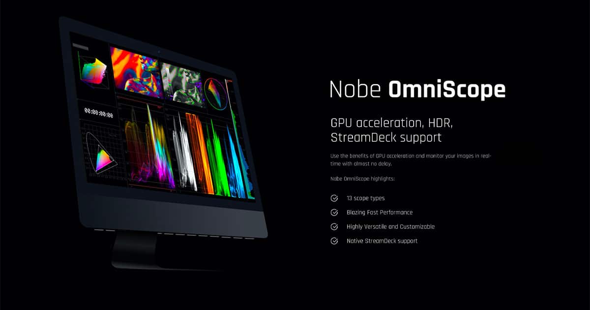 Nobe OmniScope هو برنامج احترافي لمراقبة الفيديو والألوان يوفر مجموعة واسعة من السكوابات والتحليلات في الزمن الحقيقي بجانب تسريع GPU، ما يجعله أساسياً لعمليات التصحيح اللوني، البث، وضمان الجودة في مراحل ما بعد الإنتاج والإنتاج الحي. يستخدمه المحترفون لأنه يجمع بين 19 نوعاً من السكوابات، دعم HDR ودولبي فيجن في الإصدارات المتقدمة، وتكامل عميق مع أشهر برامج المونتاج، مع مرونة عالية في تخصيص الواجهات وتعدد المدخلات، مما يرفع دقة القرارات الإبداعية والتقنية ويقلل أخطاء الإشارة واللون.