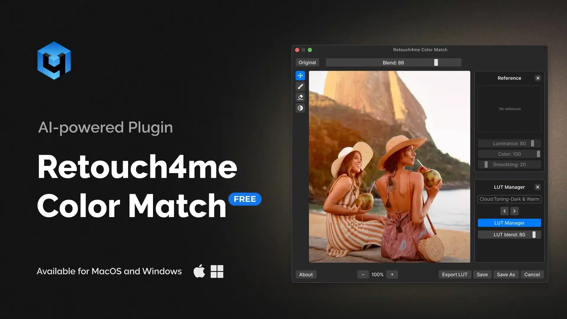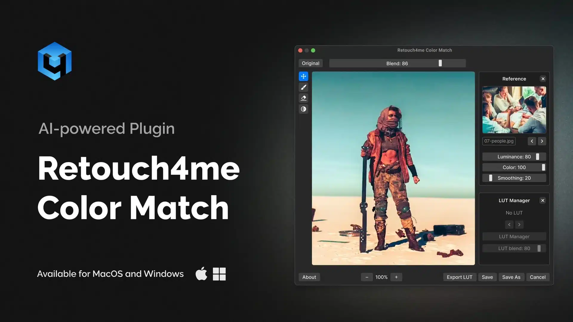 برنامج Retouch4me Color Match هو إضافة ونسخة مستقلة تعتمد على الذكاء الاصطناعي لمطابقة الألوان بين صورتين عبر استخراج البصمة اللونية من صورة مرجعية وتطبيقها على الصورة المستهدفة بدقة عالية في خطوة واحدة، ما يحقق اتساقًا لونيًا سريعًا واحترافيًا دون ضبط يدوي معقد. يعمل عبر تحليل مخطط الألوان والإضاءة في الصورة المرجعية وتحوّيله إلى تحويلات لونية يمكن مزجها والتحكم في شدتها على الصورة الأصلية، مع الحفاظ على مظهر طبيعي قابل للتخصيص عبر منزلقات المزج والسطوع واللون والتنعيم.