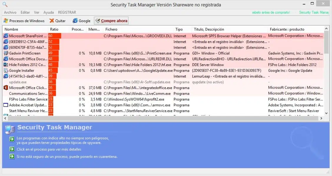 Security Task Manager هو عارض عمليات متقدم لنظام ويندوز يقيّم مخاطر كل عملية قيد التشغيل بسلم نقاط ذكي ويكشف الوظائف الخفية والسلوكيات المشبوهة التي قد تتخطى مدير المهام التقليدي ومضادات الفيروسات القائمة على التواقيع.
