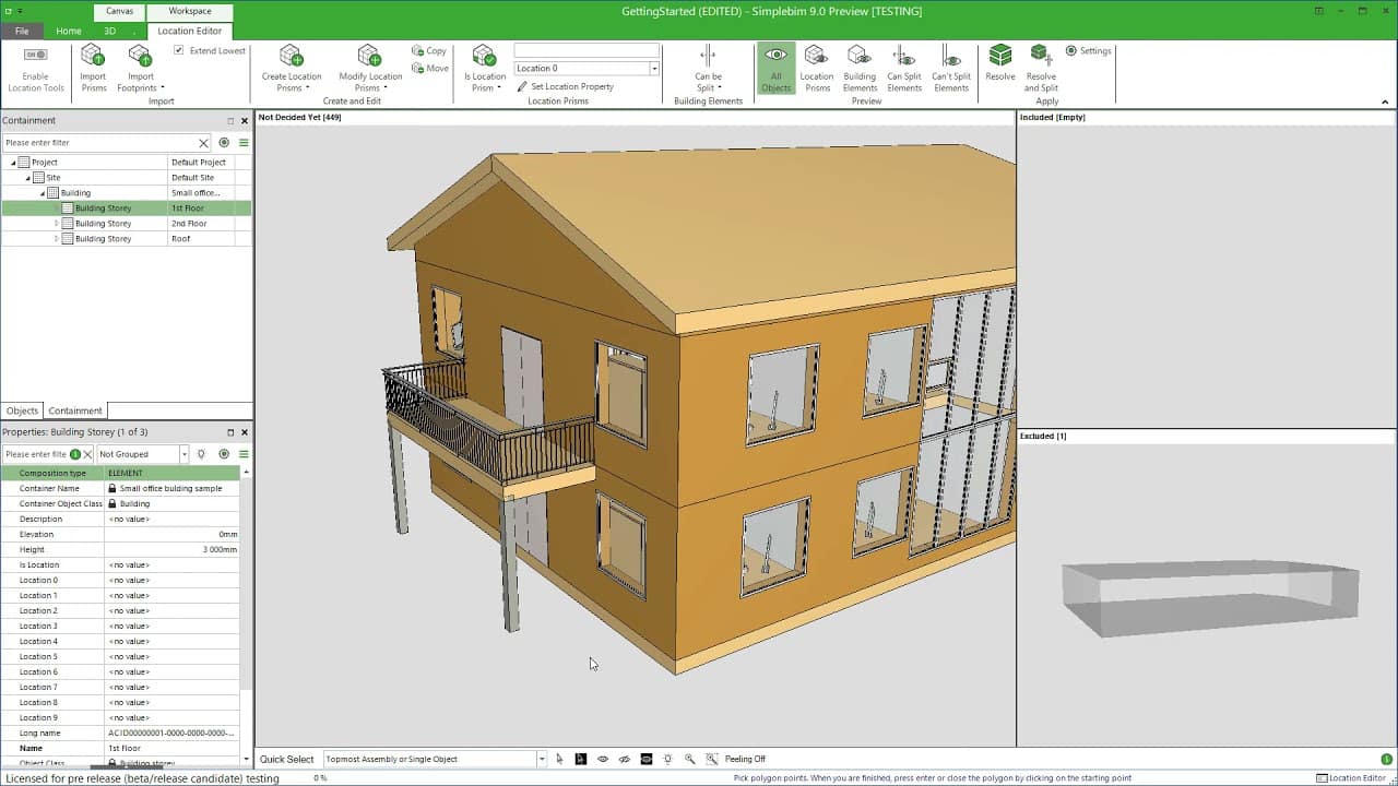 يقدّم Simplebim محرّر مواقع لتحديد المواقع تلقائيًا وتطبيع البُنى الحاوية ونقل النماذج إلى إحداثيات المشروع.