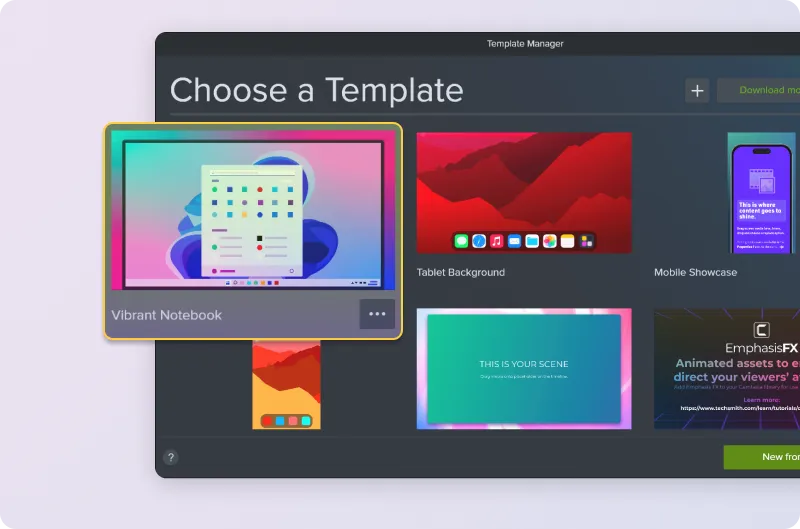 أفضل الكل في واحد. مسجل الشاشة ومحرر الفيديو. يجعل Camtasia 2026 من السهل تسجيل وإنشاء مقاطع فيديو ذات مظهر احترافي. تعمل قوالب الفيديو الجديدة في Camtasia 2023 على تسهيل إنشاء الفيديو الذي تحتاجه أكثر من أي وقت مضى.