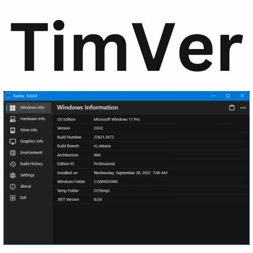 TimVer هو أداة قوية مصممة لتزويدك بنظرة تفصيلية وشاملة عن نظام التشغيل Windows الخاص بك. يوفر لك هذا البرنامج معلومات دقيقة وسهلة الفهم حول مختلف جوانب جهازك، مما يساهم في تحسين فهمك لأداء جهازك وحل أي مشاكل قد تواجهها.