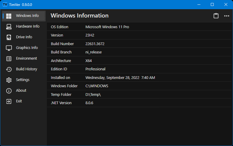 - نظرة عامة: يقدم لك TimVer ملخصًا سريعًا عن نظام التشغيل الخاص بك، بما في ذلك إصدار Windows، والمعالج، والذاكرة، وبطاقة الرسومات، وغيرها من المعلومات الأساسية.