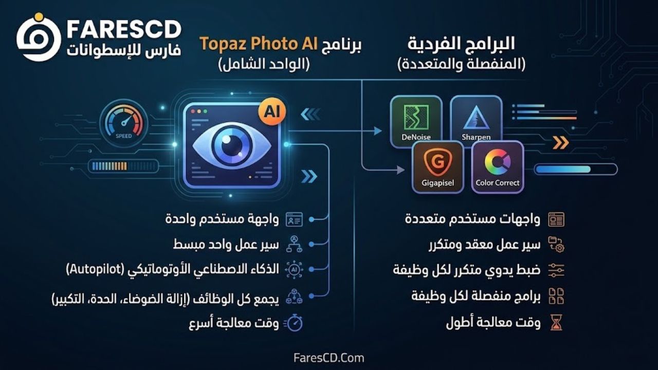 الفرق بين Topaz Photo AI والبرامج الفردية