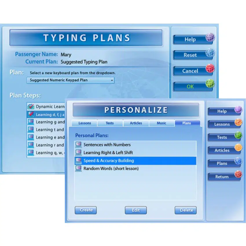 يوفر Typing Instructor Gold أكثر من 20 خطة تعلم ذكية ومنظمة تغطي جميع الأعمار والمستويات، مع إمكانيات تخصيص للأهداف وخطط مخصصة تلائم احتياجات كل متعلم بدقة. تتراوح الخطط بين دورات للمبتدئين مثل صف المنزل ودورات متقدمة للبالغين، ودورات موجهة بالعمر تبدأ من 8–9 سنوات وصولًا إلى المراهقين والراشدين، مع إمكانية اختيار خطة مقترحة أو الانتقال بين خطتين وثالثة لزيادة المهارة تدريجيًا.