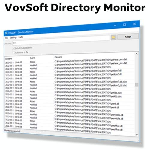 يعمل VovSoft Directory Monitor كطبقة رصد لحظي تتبع أحداث الملفات والمجلدات محليًا وعلى المشاركات الشبكية، ليعرض كل تغيير فور حدوثه مع تفاصيل دقيقة مثل الوقت ونوع الحدث والمسار، ثم يتيح أرشفة السجل وتحليله بسهولة.
