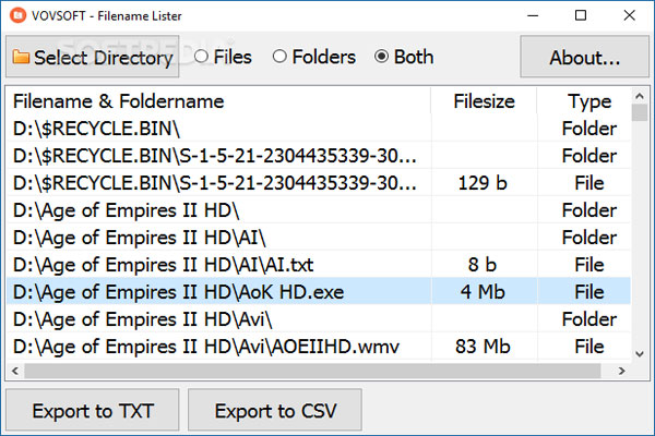 تحميل برنامج VovSoft Filename Lister | لنسخ أسماء الملفات والمجلدات