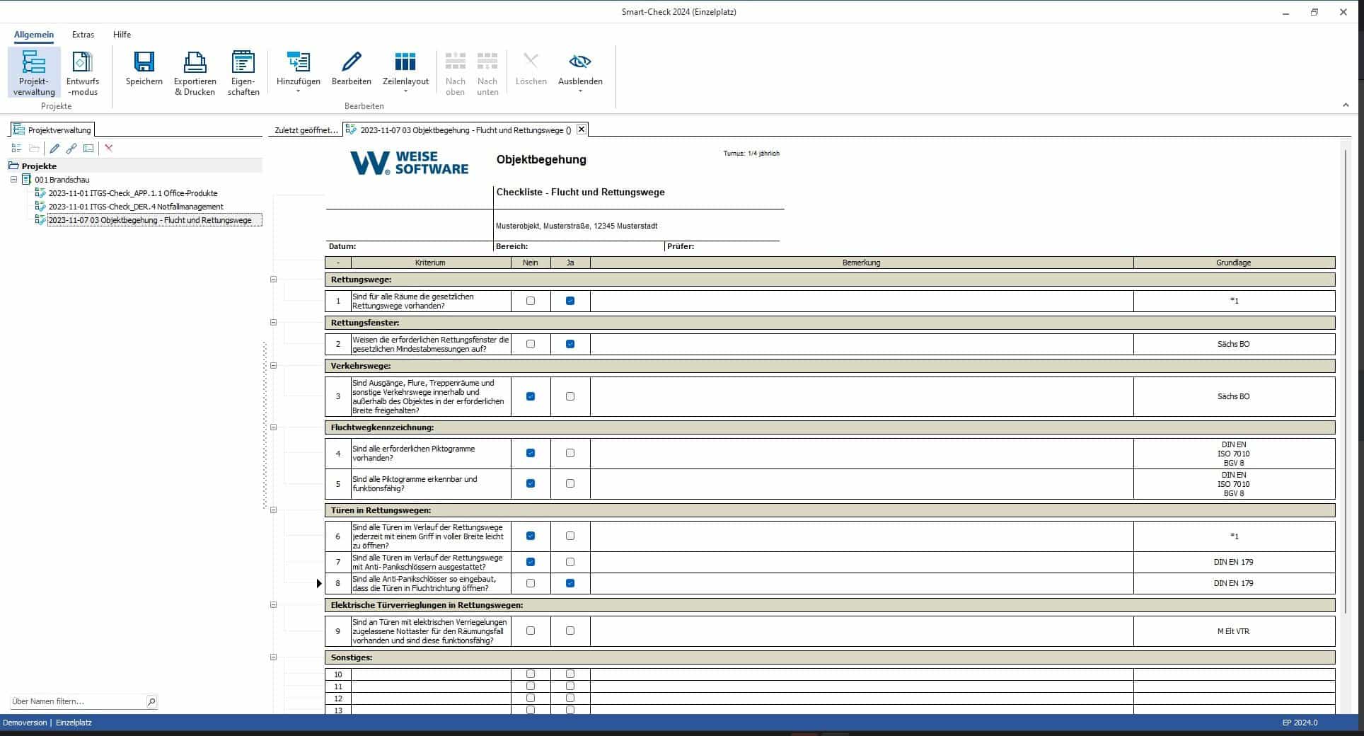 Weise Software Smart-Check هو برنامج شامل مصمم خصيصًا لإنشاء وإدارة جميع أنواع قوائم المراجعة، بدءًا من عمليات التفتيش في مواقع البناء وحتى عمليات فحص السلامة من الحرائق. سواء كنت تقوم بتفتيش المعدات، أو المرافق، أو حتى إجراء استبيانات، فإن Smart-Check يوفر لك الأدوات اللازمة لإنجاز المهمة بكفاءة وفعالية.