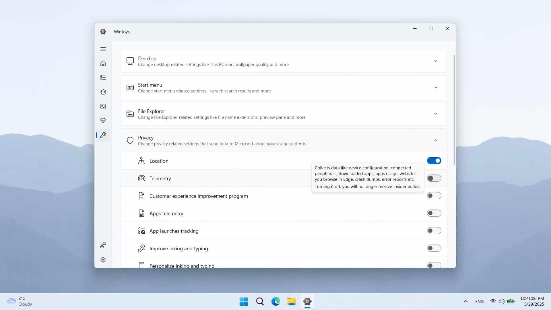 باختصار، يمنحك Wintoys القدرة على تخصيص بيئة عمل ويندوز بطريقة تضمن حماية خصوصيتك مع الحفاظ على استقرار وسرعة النظام، وكل ذلك من خلال واجهة بسيطة وسهلة الاستخدام تدعم خيارات تعديل مفصلة.