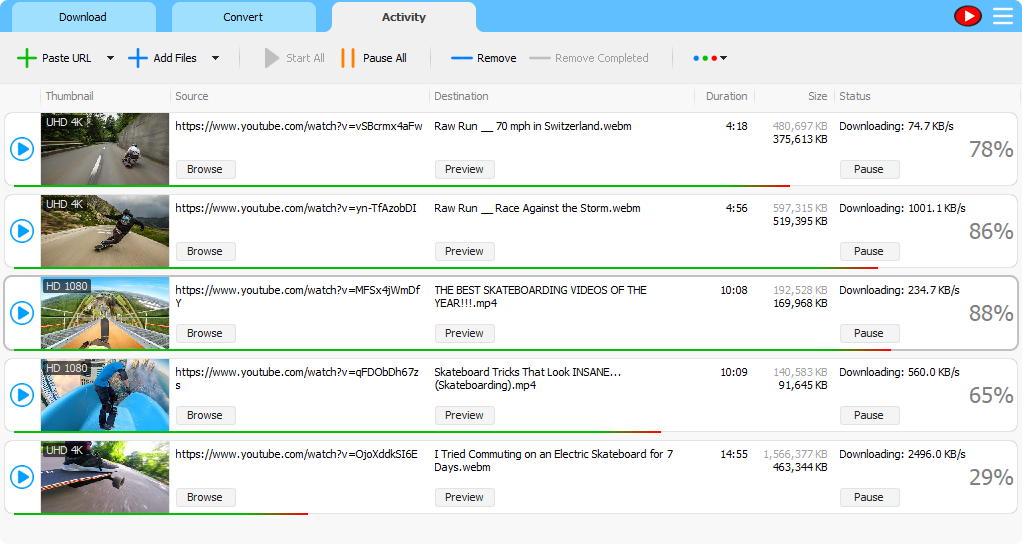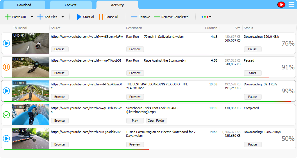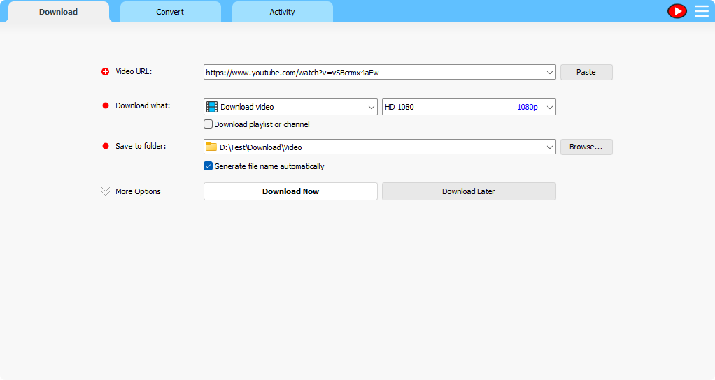 في الغالب، سيلتقط البرنامج الرابط تلقائياً، أو يمكنك الضغط على زر “Paste URL” الكبير في الزاوية.