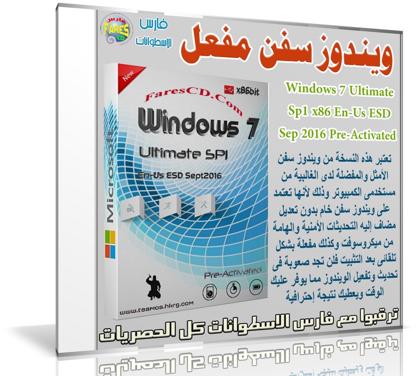 ويندوز سفن ألتميت مفعل | Windows 7 Ultimate Sp1 x86 Sep 2016 Pre-Activated