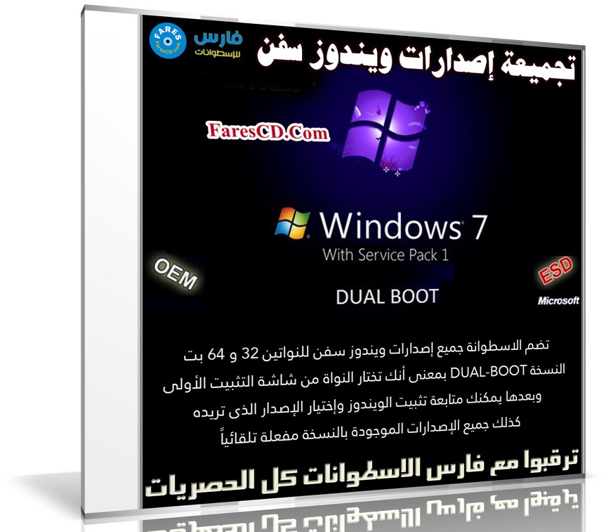 تضم الاسطوانة جميع إصدارات ويندوز سفن للنواتين 32 و 64 بت