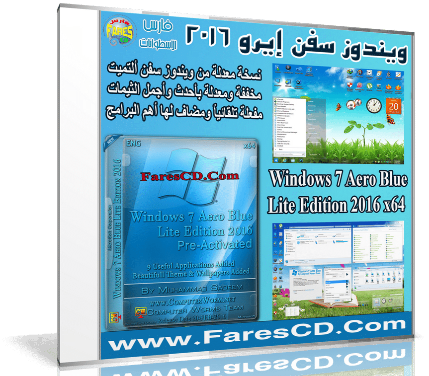 نسخة مميزة جداً من ويندوز سفن معدلة بثيمات جمالية رائعة ومفعلة تلقائياً مضاف إليها أهم البرامج الأساسية للويندوز 2016