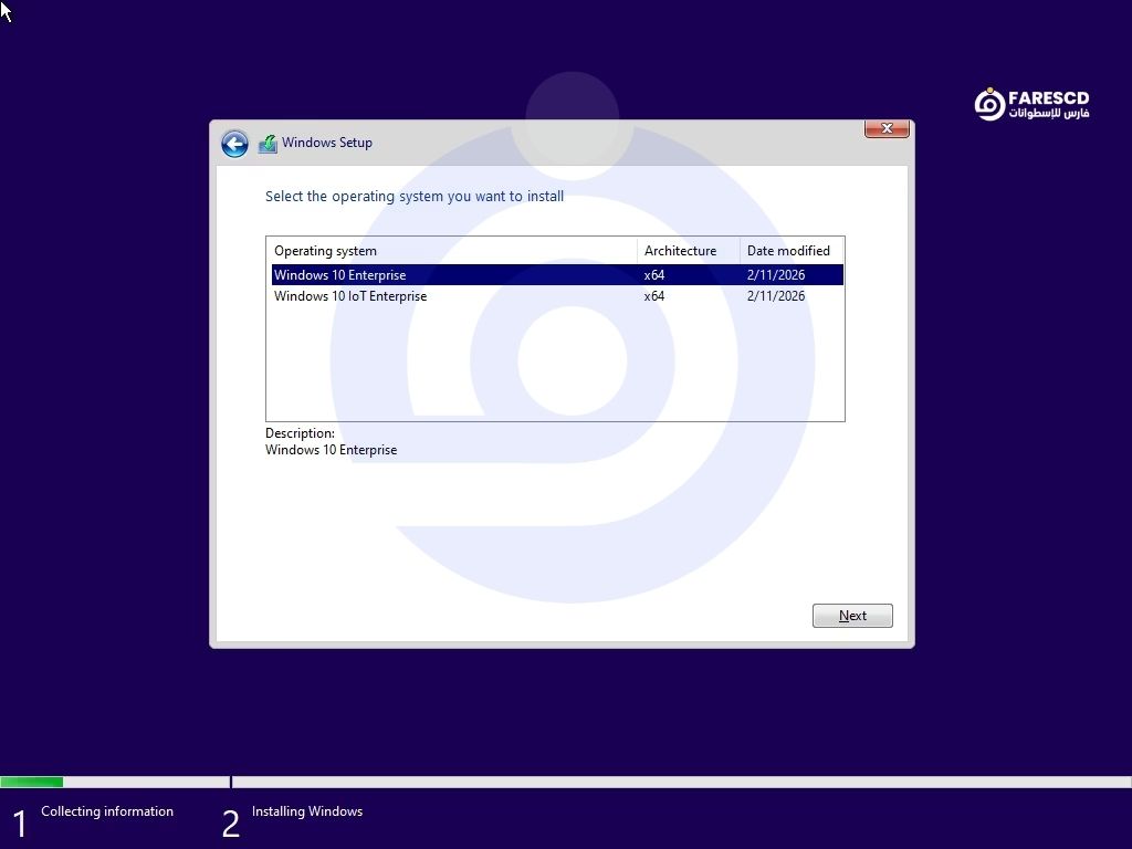 5. عندما يسألك عن نوع النسخة، تأكد من اختيار Windows 10 Enterprise.