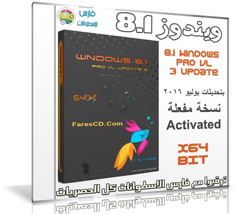 ويندوز 8.1 برو بتحديثات يوليو 2016 | Windows 8.1 Pro Vl Update 3 x64