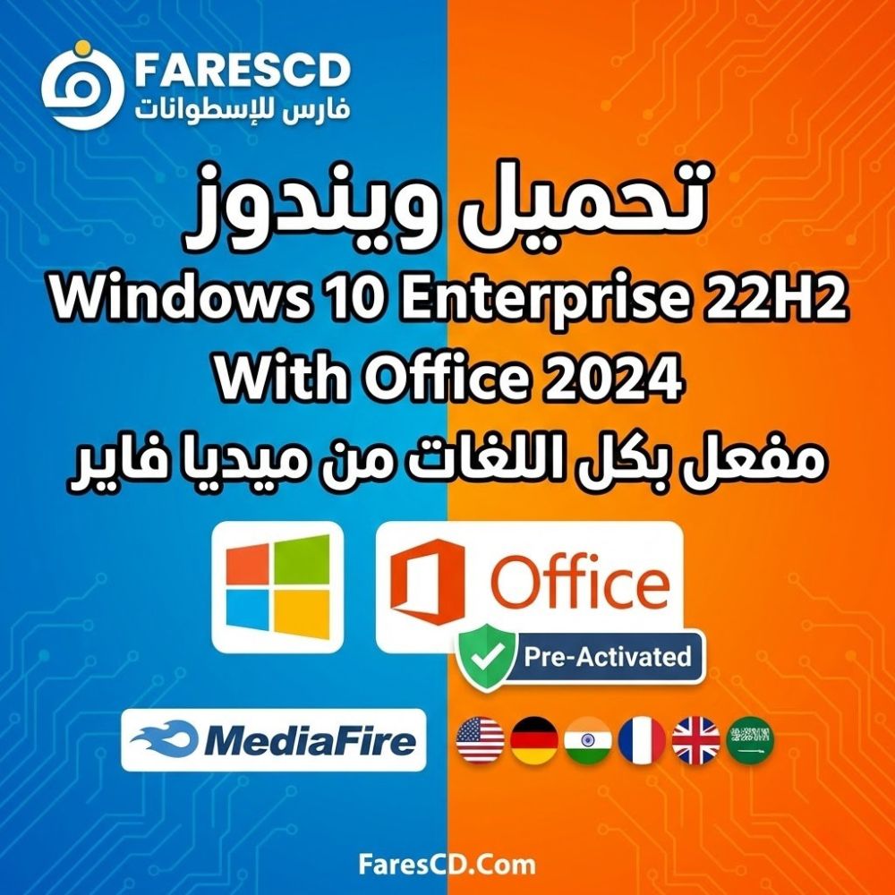 تحميل ويندوز Windows 10 Enterprise 22H2 With Office 2024 مفعل بكل اللغات من ميديا فاير | مارس 2026