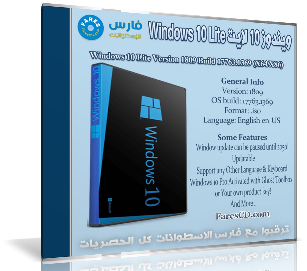 تتميز أسطوانة ويندوز 10 لايت النسخة المخففة بالسرعة و قابلية التحديث وتدعم أى لغة ولوحة مفاتيح .