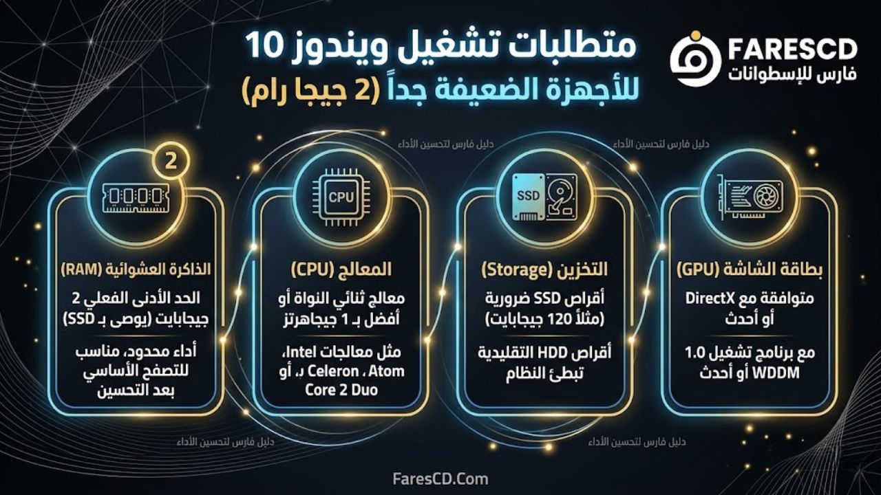 متطلبات تشغيل ويندوز 10 للاجهزة الضعيفة جدا 2 جيجا رام