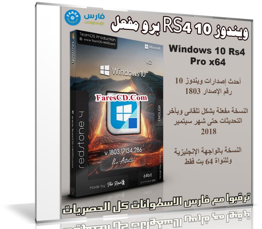 ويندوز 10 RS4 برو مفعل | Windows 10 Pro Rs4 V.1803.17134.286 x64 | سبتمبر 2018