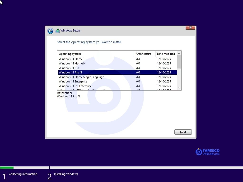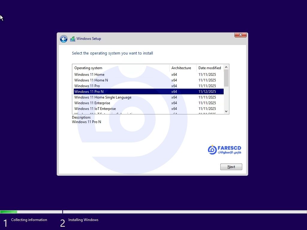 اختيار الإصدار يتم من قائمة أثناء الإعداد، ويُنصح دوماً بمطابقة الإصدار مع سيناريو الترخيص والدعم لديك (مثلاً Enterprise للمؤسسات، Pro للمحترفين، Education للمدارس) لضمان الميزات الأمنية والإدارية المناسبة مع تحديثات 25H2.