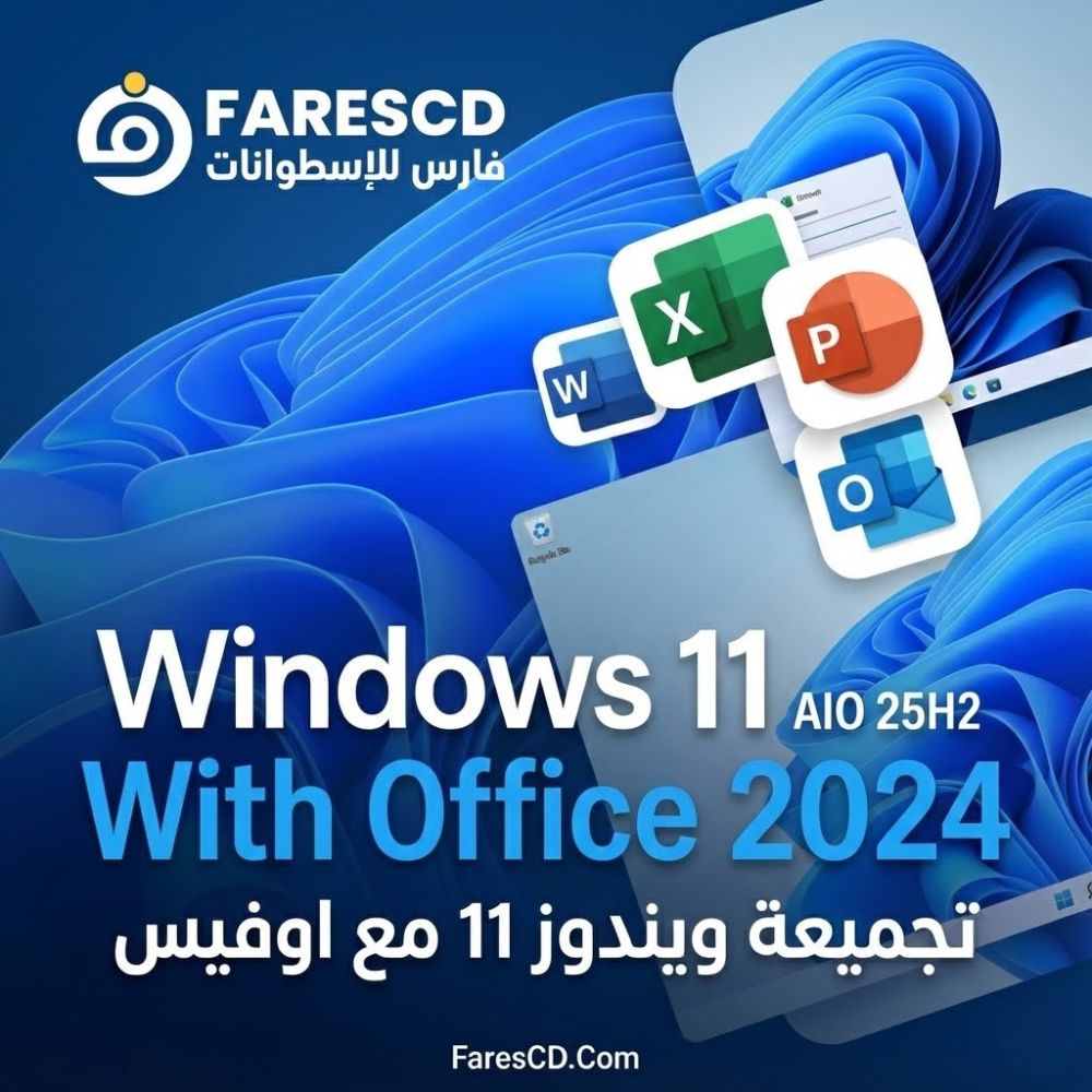 دمج Office 2024 برو بلاس داخل نظام Windows 11 AIO أو نسخ برو مبنيّة على 25H2 يجعل الجهاز جاهزاً للعمل فوراً بعد أول إقلاع، حيث يتم تثبيت Word وExcel وPowerPoint وOutlook وباقي المكونات تلقائياً مع التفعيل المسبق والدعم متعدد اللغات، ما يختصر وقت الإعداد ويمنح تجربة “تثبيت وانطلق”.