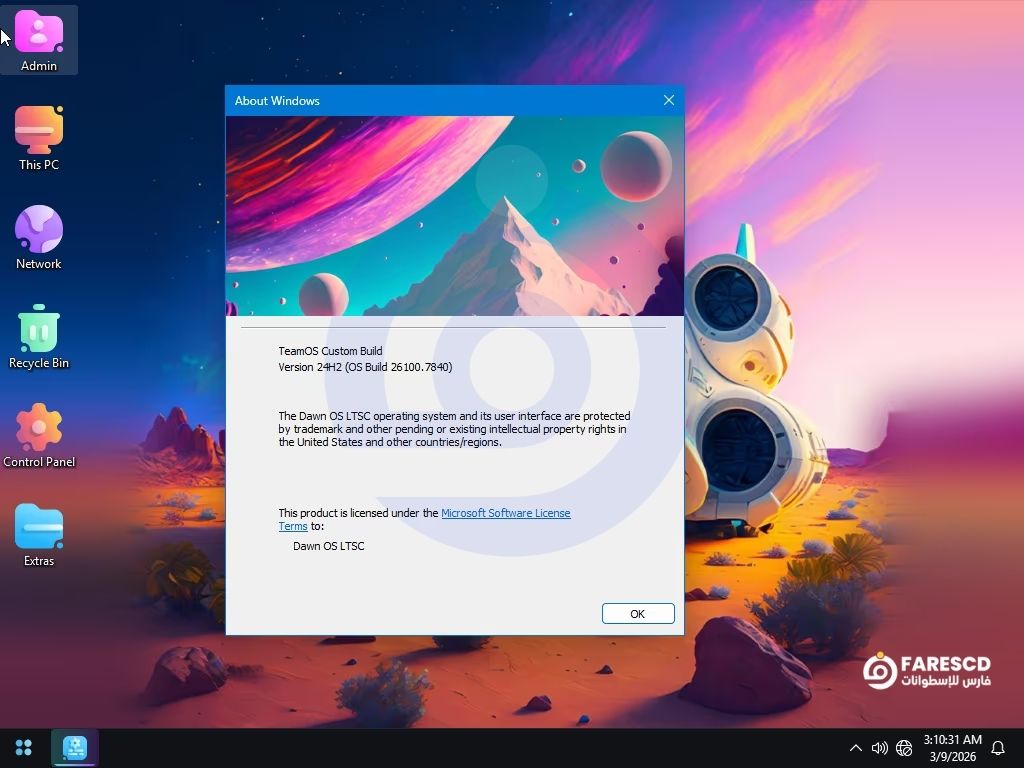 الاسم الكامل: Windows 11 Enterprise LTSC Lite 24H2 Build 26100.7840 Dawn OS Edition.