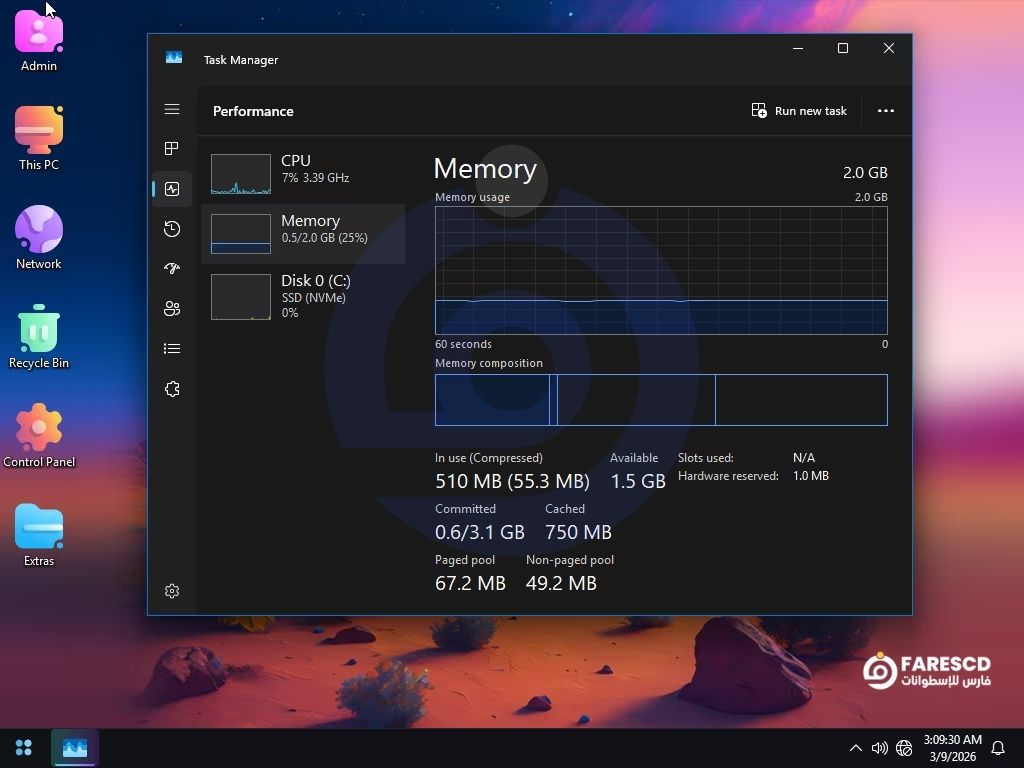 يعاني الكثيرون من الاستهلاك المفرط للذاكرة العشوائية (RAM) بمجرد فتح حاسوبهم. لكن مع تحميل نسخة ويندوز 11 24H2 معدلة ومخففة، ستتفاجأ بأن استهلاك الرام في وضع الخمول (Idle) لا يتجاوز أرقاماً ضئيلة جداً، مما يترك مساحة واسعة لعمل برامجك بسلاسة تامة.