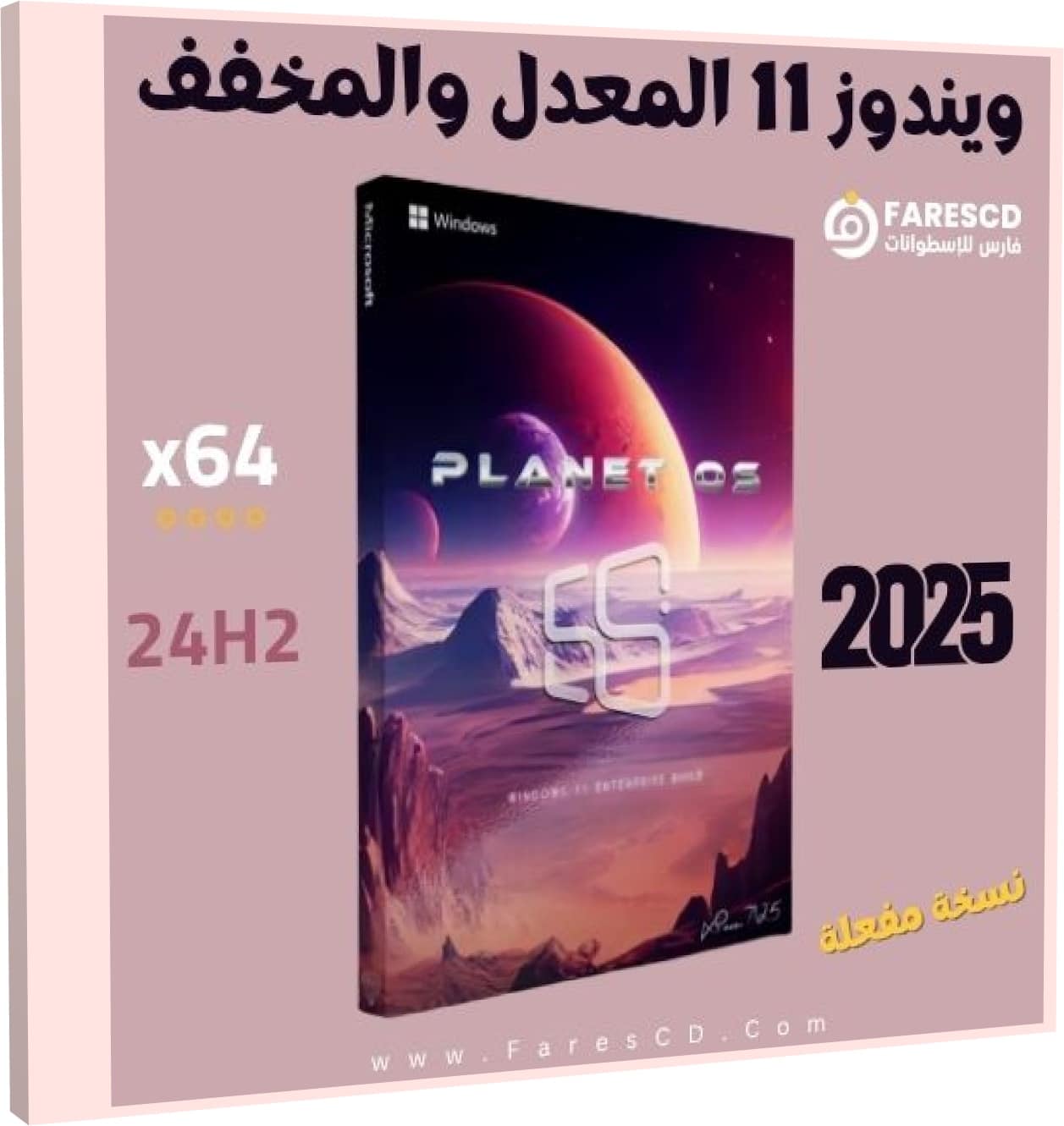 “Planet OS” هو إصدار معدل ومحسّن من Windows 11 Enterprise v24H2 Build 26100.4061، وهو مصمم خصيصًا للمستخدمين المتقدمين والمحترفين الذين يبحثون عن أقصى درجات التحكم والتخصيص. إليك أبرز مميزاته: