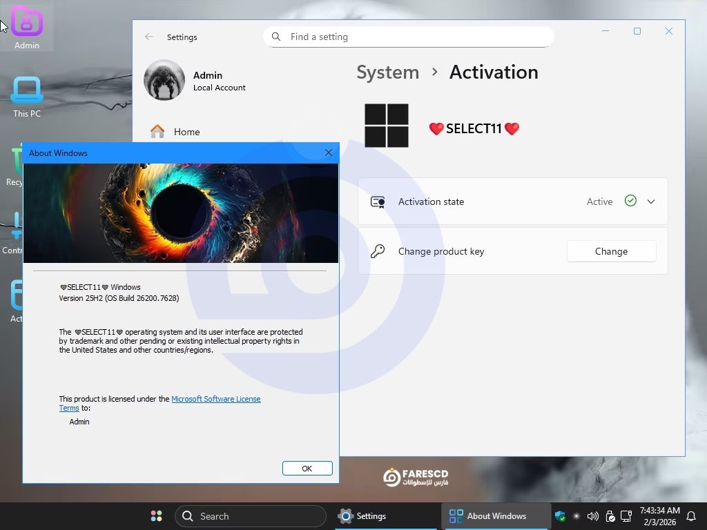 لا حاجة للاتصال بالإنترنت أثناء التثبيت ولا حاجة لإنشاء حساب مايكروسوفت. تمنحك النسخة حساب “Local Administrator” بصلاحيات كاملة فورياً، مما يحافظ على خصوصيتك ويسرع عملية الإعداد.