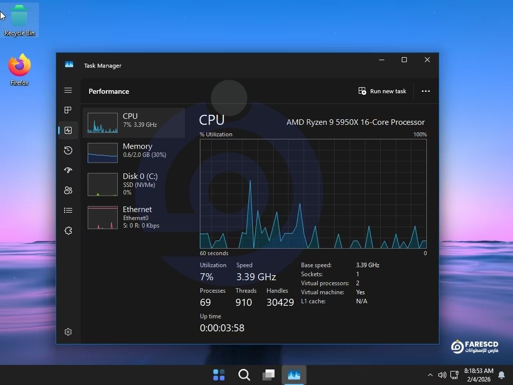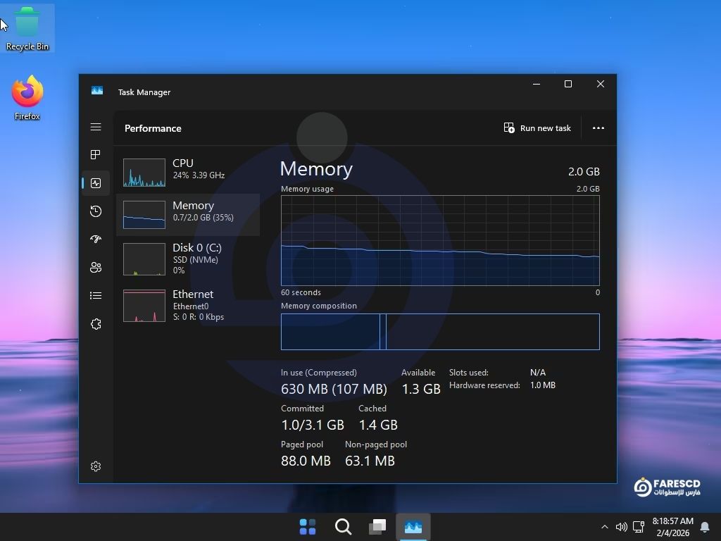 بفضل عملية الـ “Debloating” (إزالة البرمجيات الزائدة)، ستجد أن استهلاك الرامات عند وضع الخمول (Idle) قد انخفض بشكل مرعب مقارنة بالنسخة الأصلية. هذا هو المعنى الحقيقي لـ تقليل استهلاك الرام CPU.