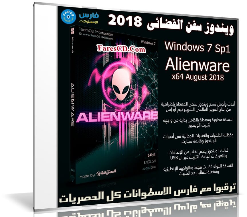 ويندوز سفن الفضائى | Windows 7 Sp1 Alienware x64 August 2018
